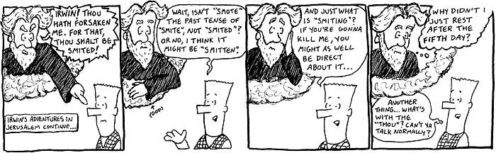 4/5/95: For the annual April Fool's issue of the BDH, we all did Bible-themed comics.