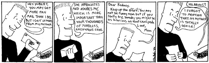 3/2/94: Oprah humor is still funny today. At least I think it is. ![]() 3/7/94: Even in 1994, I knew monkeys were comic gold. ![]() 3/8/94: The letter is signed "Douglas R. Applewhite", my college freshman roommate. ![]() 3/9/94: Hmmmm...I wonder how a centipede opens letters.